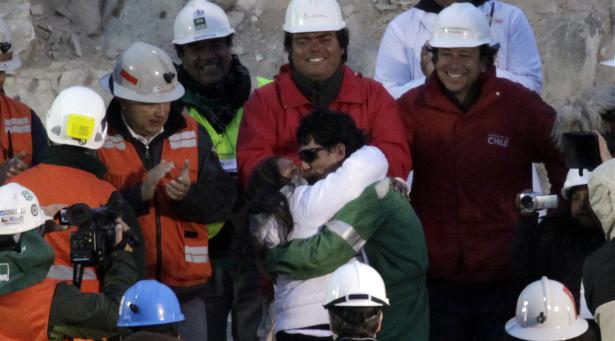 here. The last thing I feel like doing right now is blogging, but for some reason this whole ordeal had me very emotional and I just feel like documenting it. These pictures are from cnn.com. This first one is right as the first miner was coming up. His son was in tears, waiting anxiously to see his dad. I was sobbing. Very sweet.